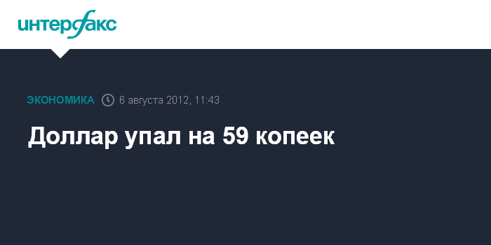 Москва. 6 августа. INTERFAX.RU - Средневзвешенный курс доллара США к российскому рублю со сроком расчетов "завтра" на торгах единой торговой сессии межбанковских валютных бирж по состоянию на 11:30 мск, на основе которого происходит процесс курсообразования доллара на следующий день, упал на 59,10 коп. и составил 31,9451 руб.