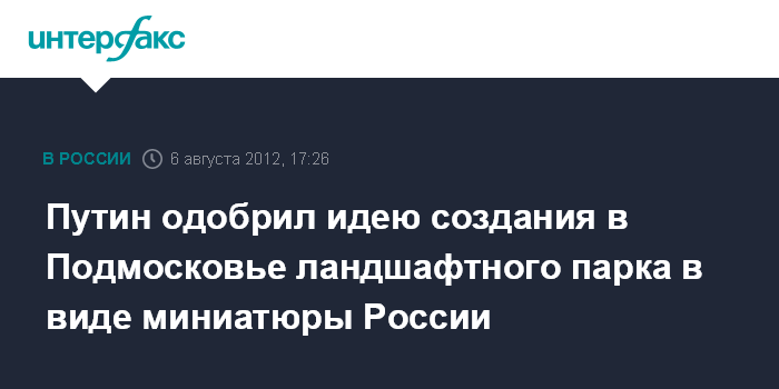 Путин одобрил идею создания в Подмосковье ландшафтного парка в виде миниатюры России