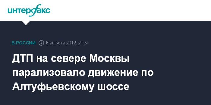 Москва. 6 августа. INTERFAX.RU - Небольшая авария с участием трех машин полностью парализовала движение на Алтуфьевском шоссе на севере Москвы, передает корреспондент "Интерфакса".