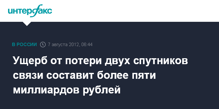 Ущерб от потери двух спутников связи составит более пяти миллиардов рублей