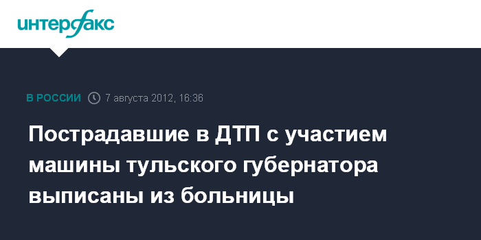 Пострадавшие в ДТП с участием машины тульского губернатора выписаны из больницы
