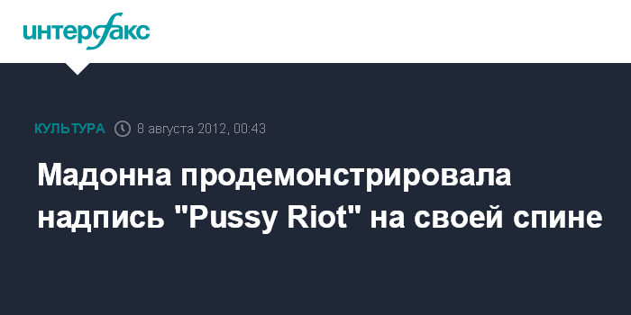 Как сообщает корреспондент "Интерфакса", в конце исполнения первой песни Мадонна сняла с себя кофту, осталась в бюстгальтере, повернулась спиной к залу, и каждый смог увидеть, что на ее спине было написано чем-то черным "Pussy Riot".