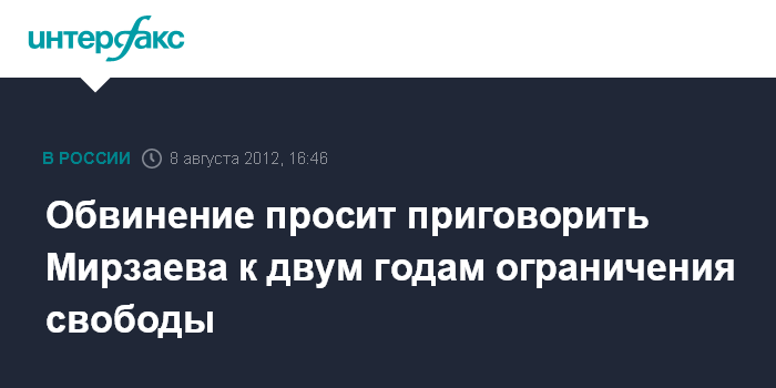 Обвинение просит приговорить Мирзаева к двум годам ограничения свободы