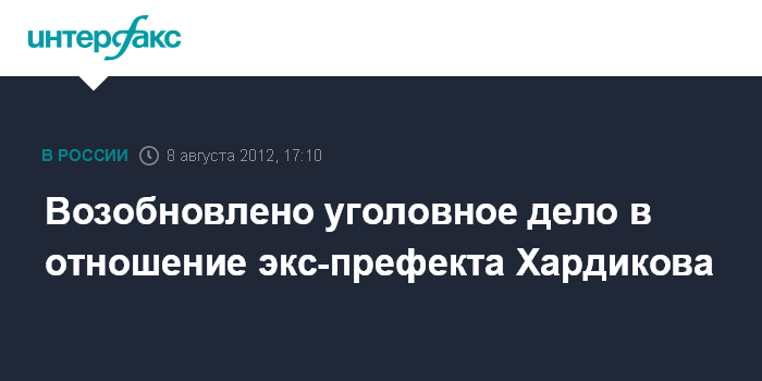 Возобновлено уголовное дело в отношение экс-префекта Хардикова