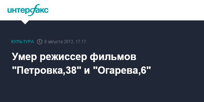 Умер режиссер фильмов "Петровка,38" и "Огарева,6"