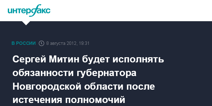 "Назначить Митина Сергея Герасимовича временно исполняющим обязанности Губернатора Новгородской области до вступления в должность лица, избранного Губернатором Новгородской области", - говорится в указе президента, текст которого распространен пресс-службой Кремля.