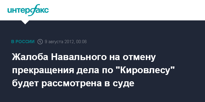 Москва. 9 августа. INTERFAX.RU - Басманный суд Москвы в четверг рассмотрит жалобу оппозиционера Алексея Навального на отмену прекращения уголовного дела по "Кировлесу".
