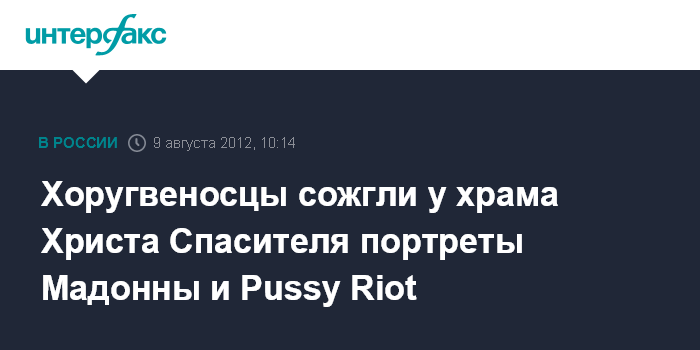 21 февраля 2012 года несколько участниц панк-группы Pussy Riot, закрыв лица масками, устроили в храме Христа Спасителя акцию, вызвавшую большой общественный резонанс. Полиция возбудила уголовное дело по ст.213 УК РФ (хулиганство). Были арестованы три участницы группы. Приговор им должны огласить 17 августа.
