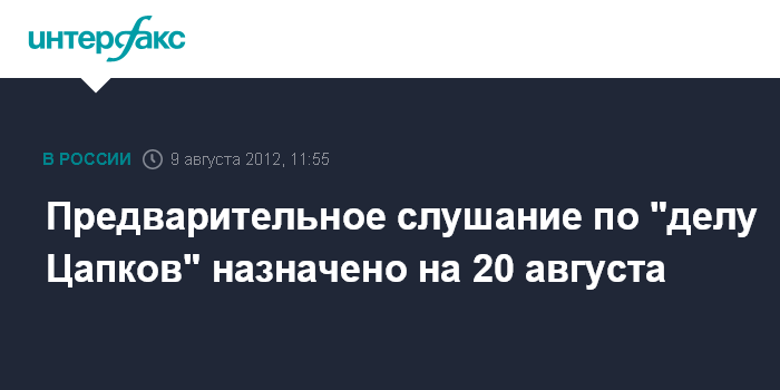 Предварительное слушание по "делу Цапков" назначено на 20 августа