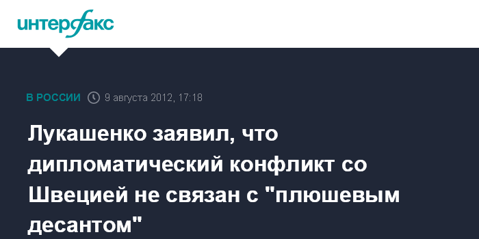 Островец (Гродненская обл.). 9 августа. INTERFAX.RU - Президент Белоруссии Александр Лукашенко призывает не связывать дипломатический конфликт между его страной и Швецией с так называемым "плюшевым десантом".