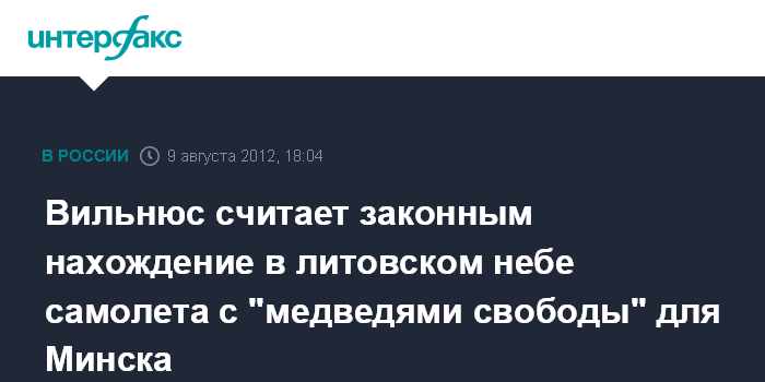 Вильнюс считает законным нахождение в литовском небе самолета с "медведями свободы" для Минска