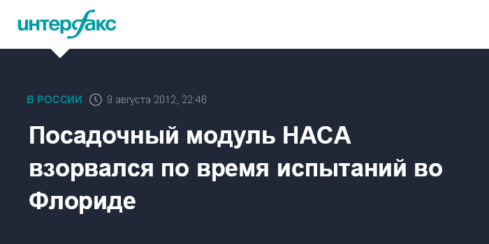 Вашингтон. 9 августа. INTERFAX.RU - Посадочный модуль НАСА "Морфиус" взорвался во время испытательного полета в Космическом центре им.Кеннеди в штате Флорида, сообщают в четверг американские СМИ.