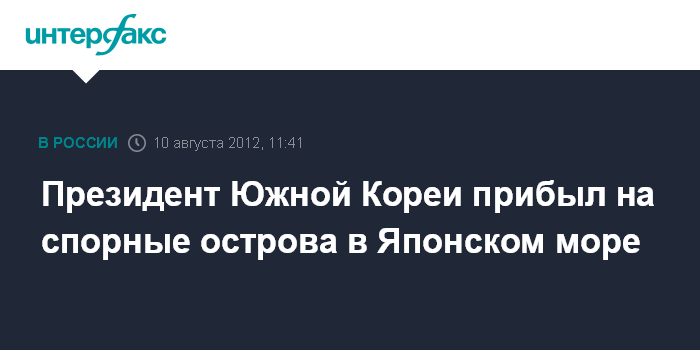 Сеул. 10 августа. INTERFAX.RU - Президент Южной Кореи Ли Мен Бак в пятницу прибыл на являющиеся предметом территориального спора между Сеулом и Токио острова Токто (японское название - Такэсима - ИФ) в Японском море, сообщают токийские СМИ.