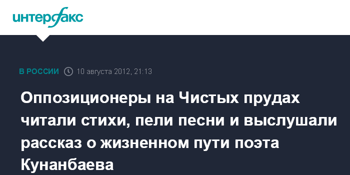 Москва. 10 августа. INTERFAX.RU - Участники оппозиционной акции, приуроченной к дню рождения казахского поэта Абая Кунанбаева на Чистых прудах в Москве, начали расходиться.
