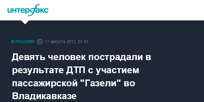 Владикавказ. 11 августа. ИНТЕРФАКС-ЮГ - Во Владикавказе в результате столкновения микроавтобуса "Газель" с "Мерседесом" пострадали девять человек, сообщает пресс-служба МЧС по Северной Осетии.