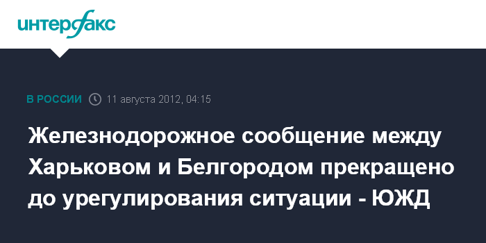 Железнодорожное сообщение между Харьковом и Белгородом прекращено до урегулирования ситуации - ЮЖД