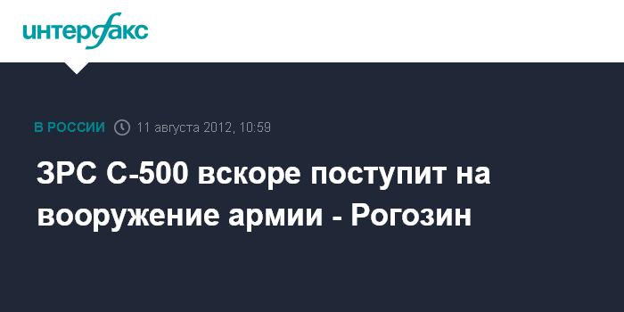 ЗРС С-500 вскоре поступит на вооружение армии - Рогозин