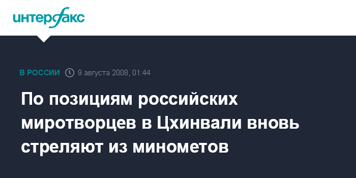 Москва. 9 августа. INTERFAX.RU - Позиции миротворцев в Южной Осетии, где находятся и российские журналисты, вновь подверглись минометному обстрелу со стороны грузинской армии. Как передает корреспондент "Интерфакса", журналисты находятся в укрытии, обстрел начался около 1:30 мск.
