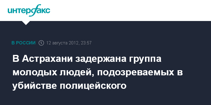Ростов-на-Дону. 12 августа. ИНТЕРФАКС-ЮГ - Полицейский убит в Астрахани, подозреваемые в совершении преступления задержаны, сообщили агентству "Интерфакс - Юг" в правоохранительных органах Астраханской области.