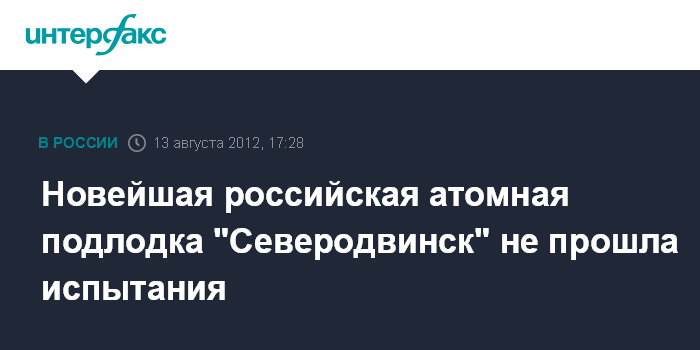 Новейшая российская атомная подлодка "Северодвинск" не прошла испытания