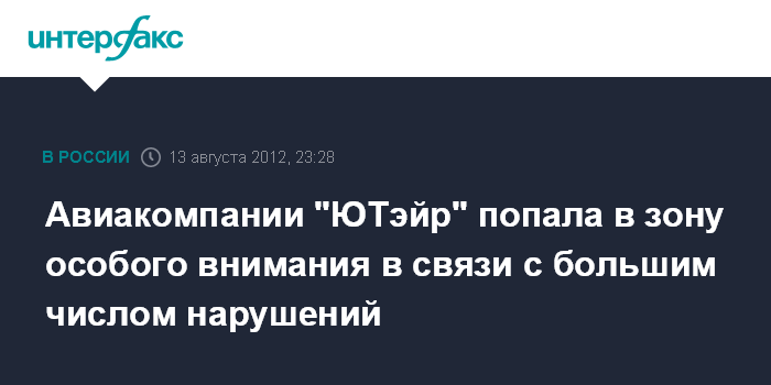Авиакомпании "ЮТэйр" попала в зону особого внимания в связи с большим числом нарушений
