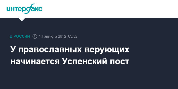 Москва. 14 августа. ИНТЕРФАКС - Во вторник у православных верующих начинается Успенский пост, который продлится две недели.