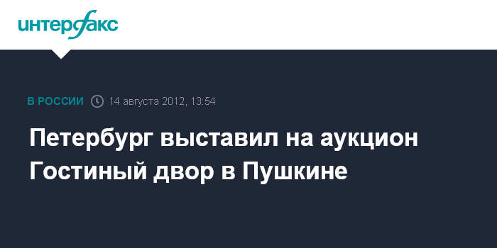 Санкт-Петербург. 14 августа. INTERFAX.RU - ОАО "Фонд имущества Санкт-Петербурга" 3 октября 2012 года планирует провести аукцион по продаже Гостиного двора в Пушкине, сообщается в материалах компании.