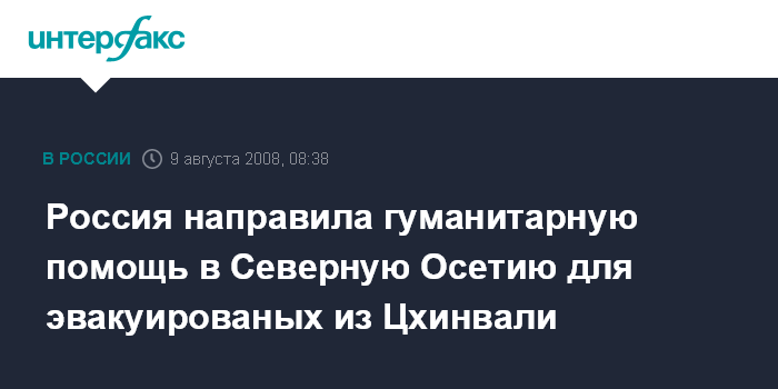 Россия направила гуманитарную помощь в Северную Осетию для эвакуированых из Цхинвали