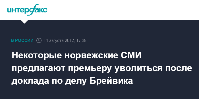 В частности, одна из крупнейших норвежских газет - "Вендерс ганг" - опубликовала во вторник критическую статью в адрес главы правительства, призывая его покинуть свой пост. В статье говорится, что именно Столтенберг несет полную ответственность за ошибки, допущенные полицией в ходе операции по обезвреживанию террориста 22 июля 2011 года.