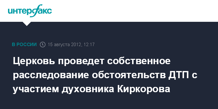 Москва. 15 августа. INTERFAX.RU - В Русской православной церкви дадут оценку дорожному происшествию в Москве с участием настоятеля храма Илии Пророка в Обыденском переулке игуменом Тимофеем (Подобедовым) после внутреннего расследования.