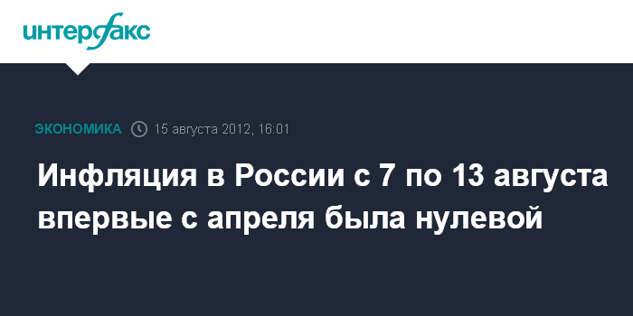 Инфляция в России с 7 по 13 августа впервые с апреля была нулевой
