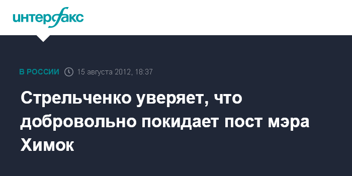 Москва. 15 августа. INTERFAX.RU - Бывший глава подмосковных Химок Владимир Стрельченко заявил, что принял решение об уходе с поста без давления со стороны губернатора Московской области Сергея Шойгу.