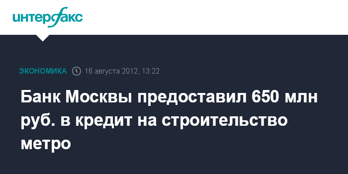 Банк Москвы предоставил 650 млн руб. в кредит на строительство метро