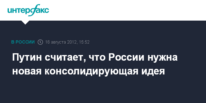 Путин считает, что России нужна новая консолидирующая идея