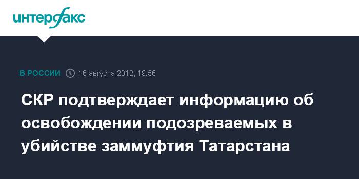 СКР подтверждает информацию об освобождении подозреваемых в убийстве заммуфтия Татарстана