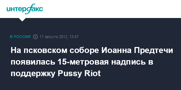 На псковском соборе Иоанна Предтечи появилась 15-метровая надпись в поддержку Pussy Riot