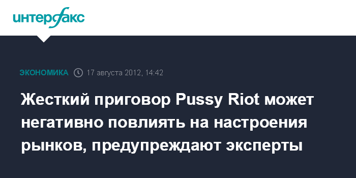 Москва. 17 августа. INTERFAX.RU - Финансовые эксперты считают, что жесткий приговор по делу Pussy Riot может оказать негативное влияние на инвестиционный климат и повысить политические риски, однако эффект вряд ли будет сильным.