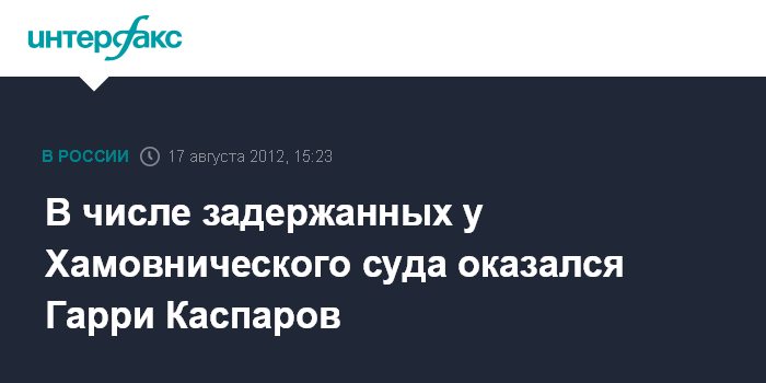 Москва. 17 августа. INTERFAX.RU - Оппозиционный политик Гарри Каспаров задержан у здания Хамовнического суда, где проходит акция сторонников Pussy Riot.