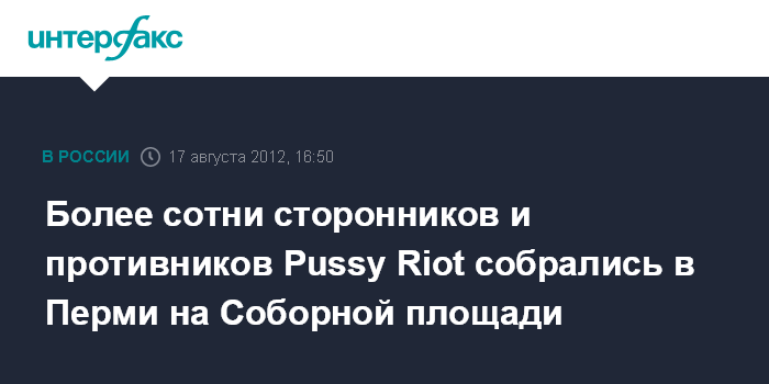 Пермь. 17 августа. INTERFAX.RU - Порядка 100-150 человек пришли в настоящее время на Соборную площадь Перми, чтобы выразить поддержку, с одной стороны, и протест, с другой стороны, действиям участниц группы Pussy Riot.