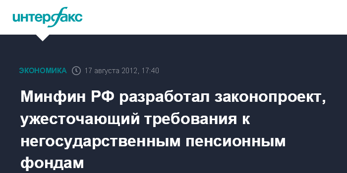 Минфин РФ разработал законопроект, ужесточающий требования к негосударственным пенсионным фондам