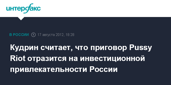 Москва. 17 августа. INTERFAX.RU - Бывший министр финансов Алексей Кудрин считает, что приговор девушкам из панк-группы Pussy Riot подорвет доверие граждан РФ к судебной системе и нанесет ущерб инвестиционной привлекательности страны.