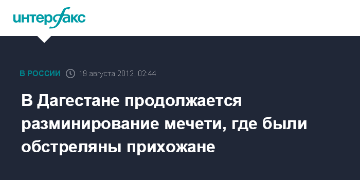 Ростов-на-Дону. 19 августа. ИНТЕРФАКС-ЮГ - В Хасавюрте саперы продолжают обезвреживать взрывное устройство в мечети, где было совершено нападение на прихожан, сообщили в городском управлении внутренних дел.