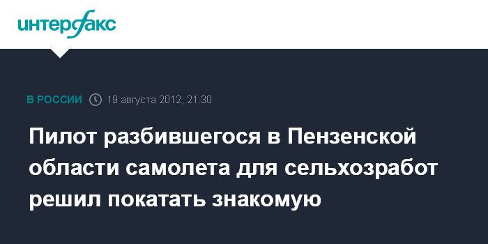 Пилот разбившегося в Пензенской области самолета для сельхозработ решил покатать знакомую