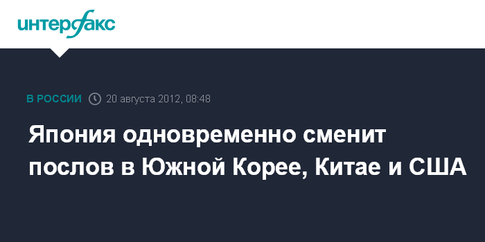 Токио. 20 августа. INTERFAX.RU - Токио в ближайшее время намерен назначить новых глав своих дипмиссий в Сеуле, Пекине и Вашингтоне, что может говорить о реструктуризации дипломатии в отношении этих трех стран, пишут в понедельник японские СМИ.