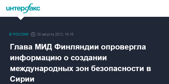 Глава МИД Финляндии опровергла информацию о создании международных зон безопасности в Сирии