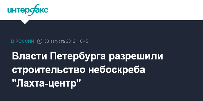 Власти Петербурга разрешили строительство небоскреба "Лахта-центр"