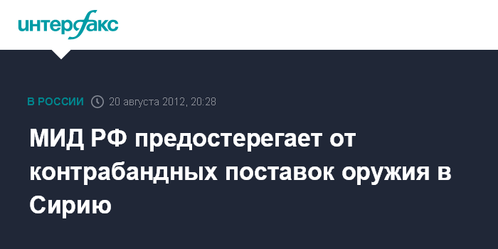 Москва. 20 августа. INTERFAX.RU - В Москве считают недопустимой контрабанду оружия в Сирию, особенно в условиях активизации там элементов, связанных с международным терроризмом.