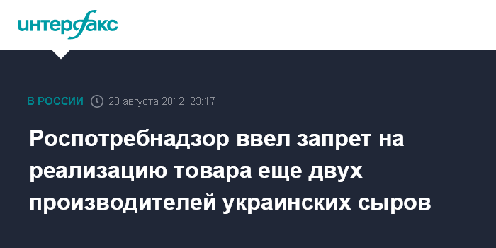 Москва. 20 августа. INTERFAX.RU - Несколько партий украинских сыров от двух производителей запрещены к реализации в России, сообщает Роспотребнадзор.