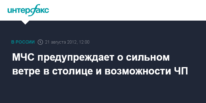 Москва. 21 августа. INTERFAX.RU - Порывы сильного ветра снова ожидаются в Москве, сообщили "Интерфаксу" в пресс-службе ГУ МЧС России по Москве.