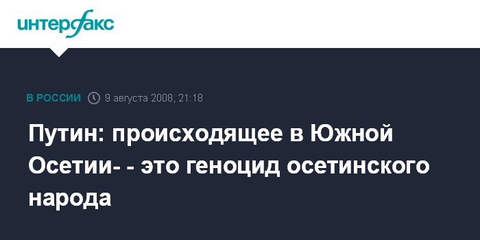 Путин: происходящее в Южной Осетии- - это геноцид осетинского народа